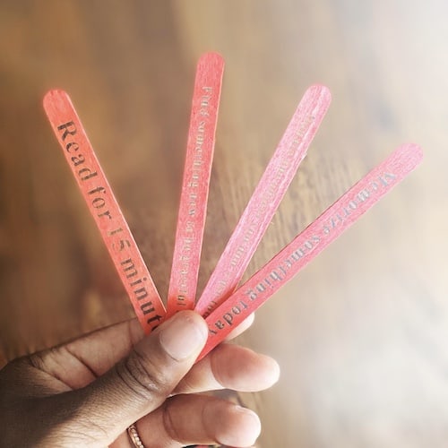 - Social Emotional Learning (SEL): Use as part of an SEL lesson. Pick one stick, discuss what it could mean and how it could be applied to everyday life.