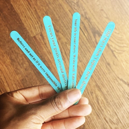 One thing that I personally love is that these sticks are color coded to show three different categories, quotes, reminders and life tips. The quotes are helpful for provoking thoughts, the reminders are great for boosting perspective and the life tips help cultivate a positive mindset.